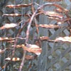 item no:3.5/10ff Copper tree water feature. Front facing, with elegant 3x15mm twisted stem trunk. Height 1250mm, width 800mm, depth 400mm. 47 water fed leaves.