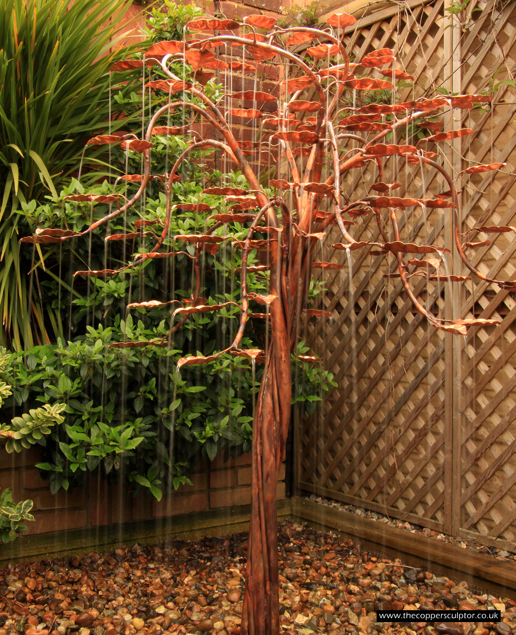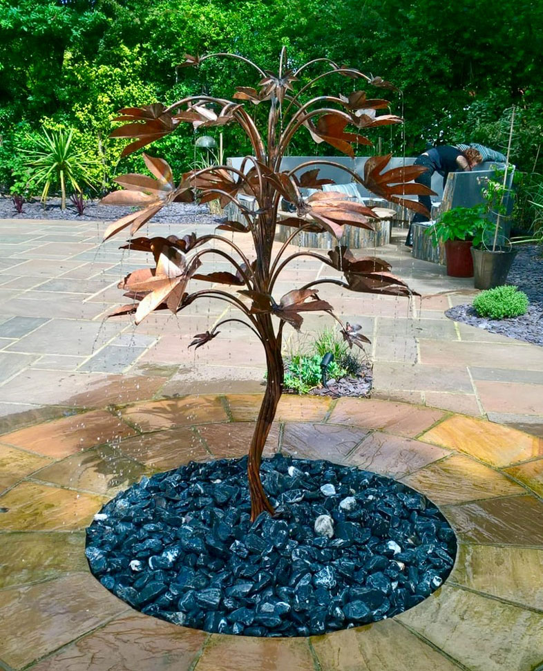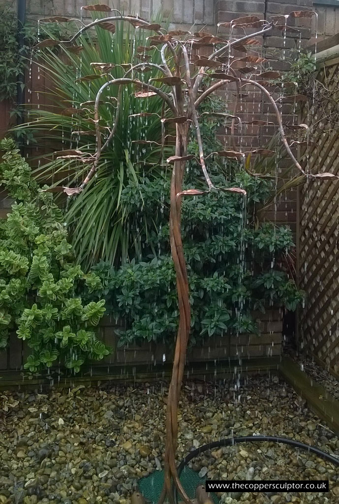 Twisted Fantasy copper tree water feature.